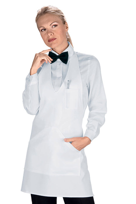 Il grembiule perfetto per il tuo personale di sala e bar! Realizzato in resistente tessuto Bistro Bianco con taschino porta penna e due comode tasche laterali. Altezza regolabile con bottoni e leggero con 220 gr/m2. Taglia unica per adattarsi a tutti i membri del tuo team.