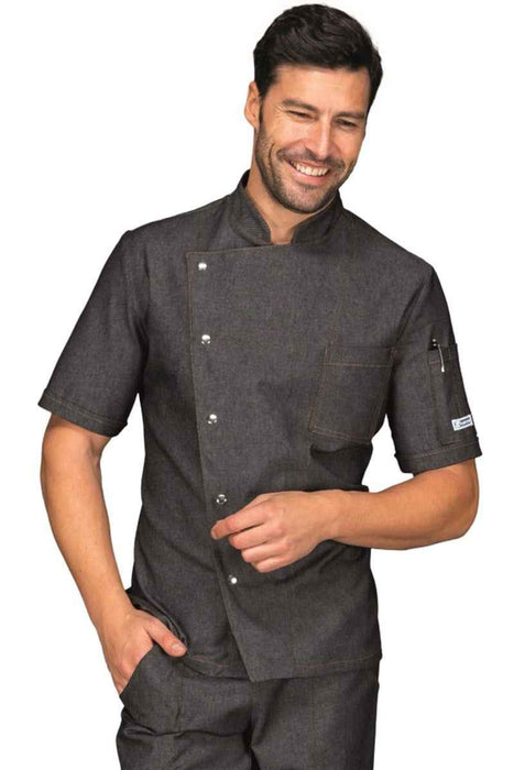 La Giacca Cuoco Belfast Black Jeans slim unisex di Isacco è progettata per garantire comfort e funzionalità in cucina. Realizzata in 100% poliestere a manica lunga e 100% cotone a manica corta, offre traspirabilità grazie al Microfor. Presenta una pratica allacciatura asimmetrica con bottoni a pressione e taschini sul petto e sulla manica, ideali per riporre piccoli strumenti. Perfetta come divisa professionale per chef in ristoranti, catering o ambienti di cucina impegnativi, unisce stile e praticità.