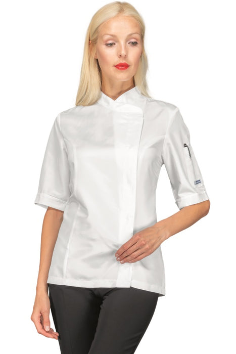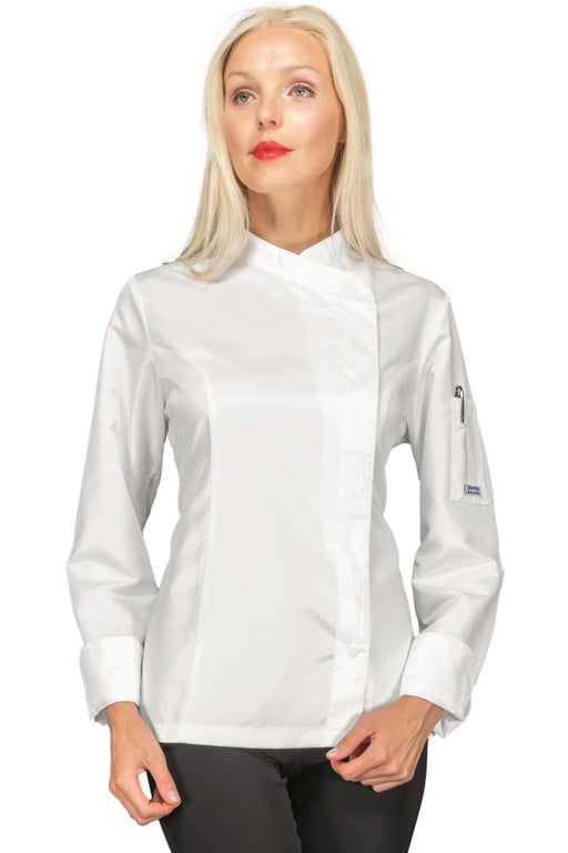 Giacca Cuoco Lady Alaska sciancrata da donna Isacco Manica Lunga e corta disponibile nei colori bianco e nero. Con collo e polsi in contrasto. Taschino alla manica e allacciatura asimmetrica con bottoni a pressione. Ideale come divisa da chef in cucina, ristorante o catering. Colori disponibili: bianco o nero, In poliestere 100% Superdry