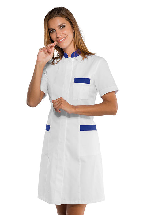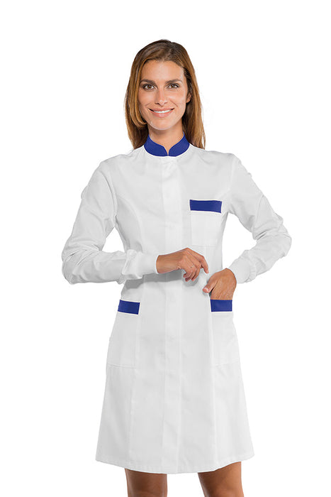 Camice donna Catalina Bianco + Blu Cina Manica Lunga, corta e con polsino in maglia, Isacco. Ottimo nel settore alimentare estetico e sanitario. Divisa da lavoro per aziende di servizi.
