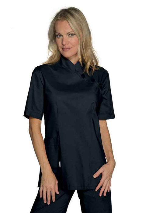 Casacca donna Taipei Nero Manica Lunga con abbottonatura laterale. Utilizzata come divisa per professionista odontoiatrico e per ambito clinico cosmetico e sanitario. Con una tasca a destra