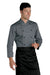 Divisa cuoco professionale completa Made in Italy Isacco dove vestibilità e comfort si coniugano con l'estetica sobria e classica del grigio. Un tocco di stile distintivo è dato dalla fantasia rigata grigio Londra 12 su pantaloni e accessori.