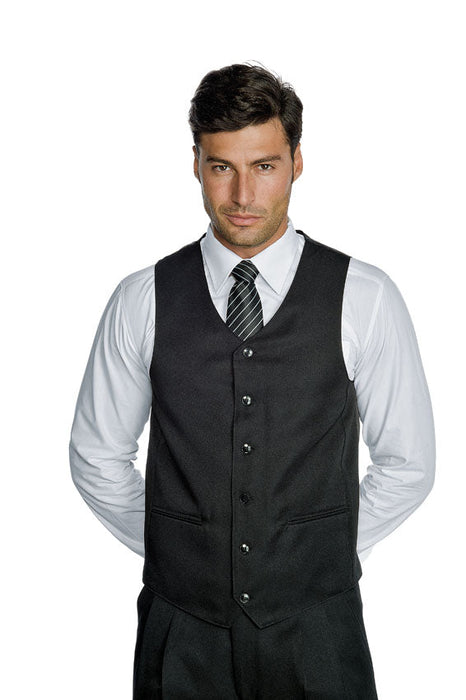 Semplifica il tuo lavoro in sala e al bar con il Gilet Cameriere Rialto nero. Realizzato al 100% in poliestere. Facilità di movimento e comfort garantiti per un'eccellente esperienza di lavoro.